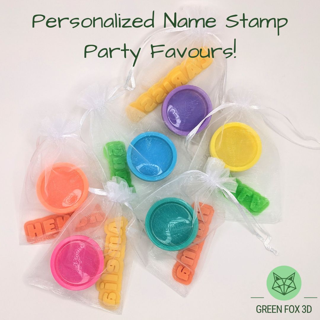 PERSONALIZATION DETAILS REQUIRED! Please send us an email (greenfox3d@gmail.com) to confirm personalization details. Indicate your desired stamp colour(s), and text (NAME or Name - we will capitalize exactly as submitted). For example: