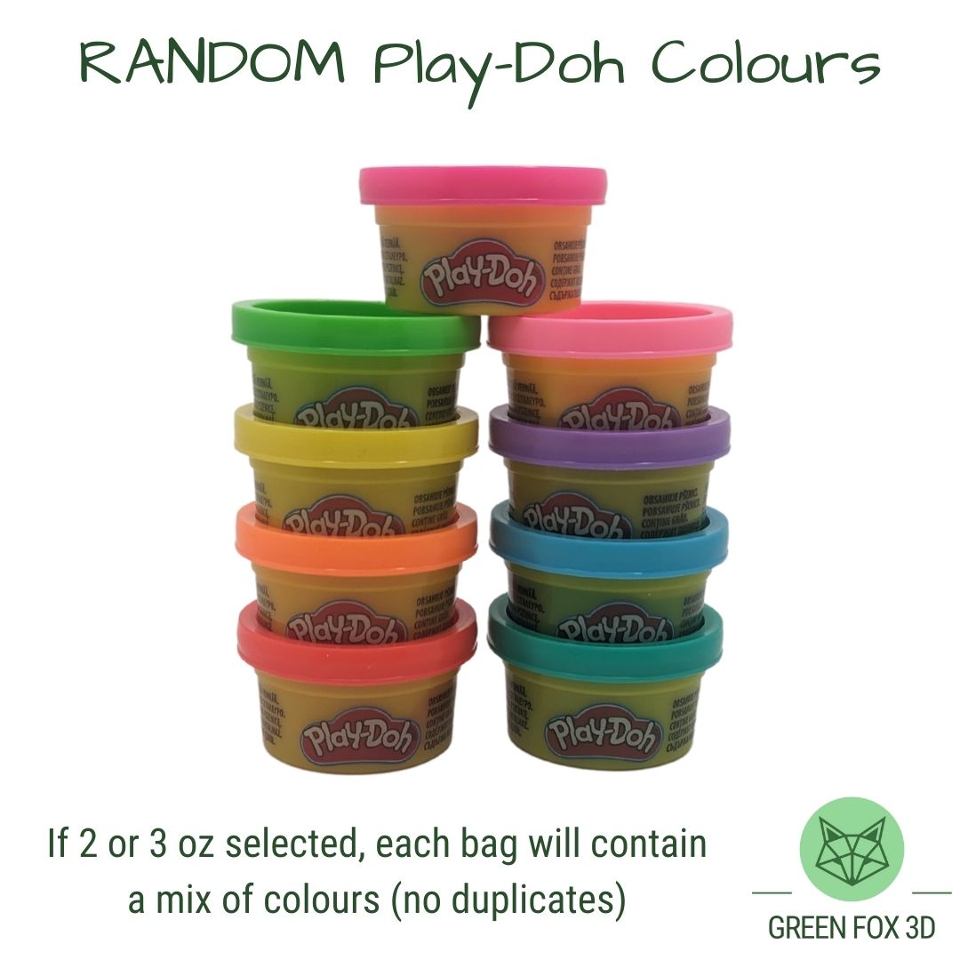Each Goodie Bag includes 1 name stamp and 1, 2 or 3 containers of Play-Doh (1 oz containers in random colours), and will be packaged in an organza bag.