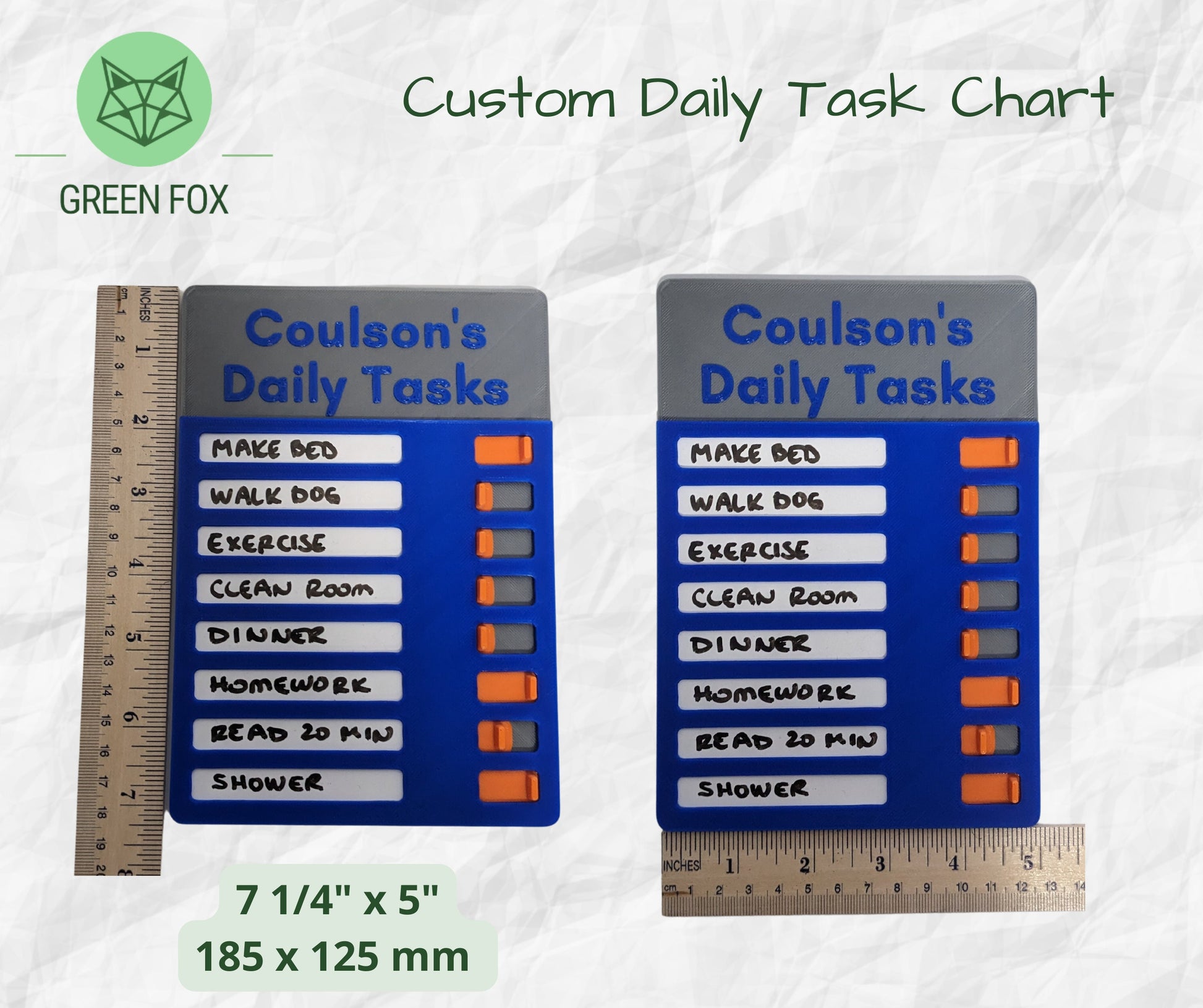 Keeping a routine is essential for kids AND adults. These personalized 3D printed chore charts let you decide on the 5 (or 8) key to-dos you want to track everyday.