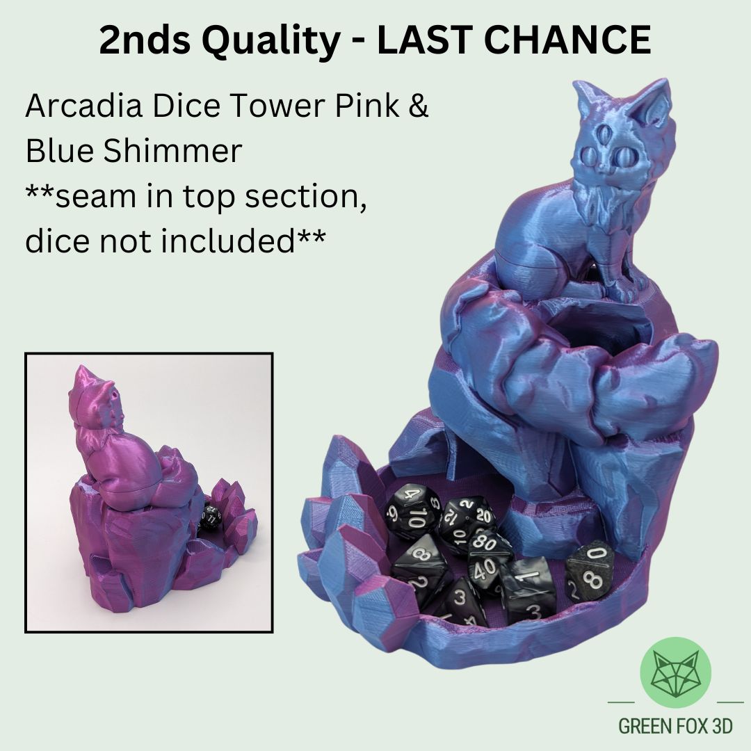 Arcadia Dice tower - printed in pink/blue shimmer PLA.  2nds quality item - seam in the top section shown in photo.